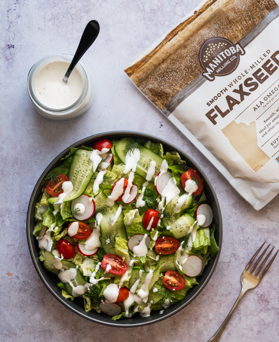Our take on a classic ranch dressing uses basic ingredients (and flaxseed!) to make a versatile dip or garnish that can compliment almost any meal or snack.